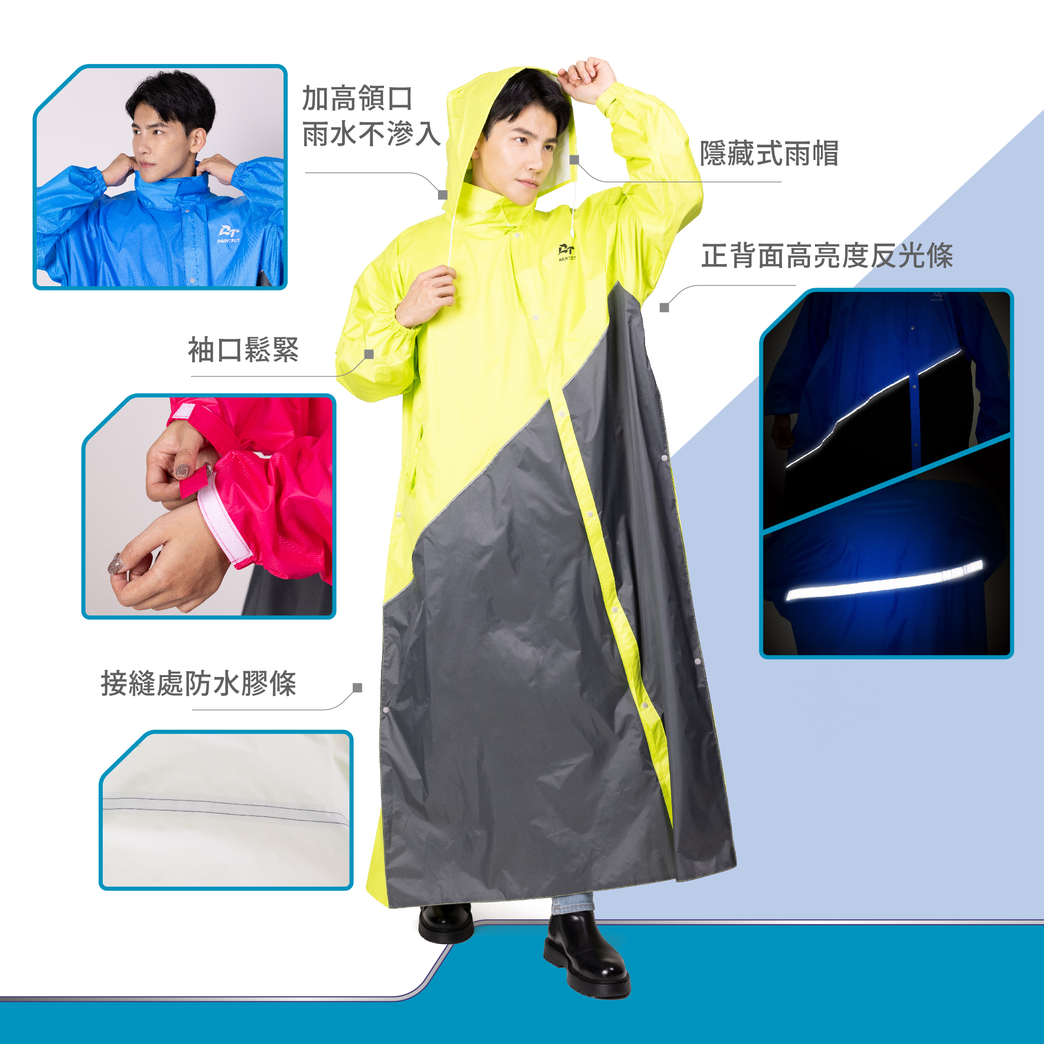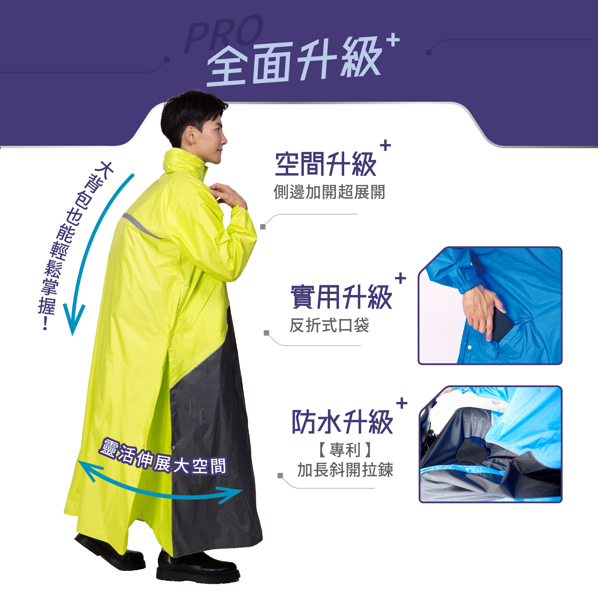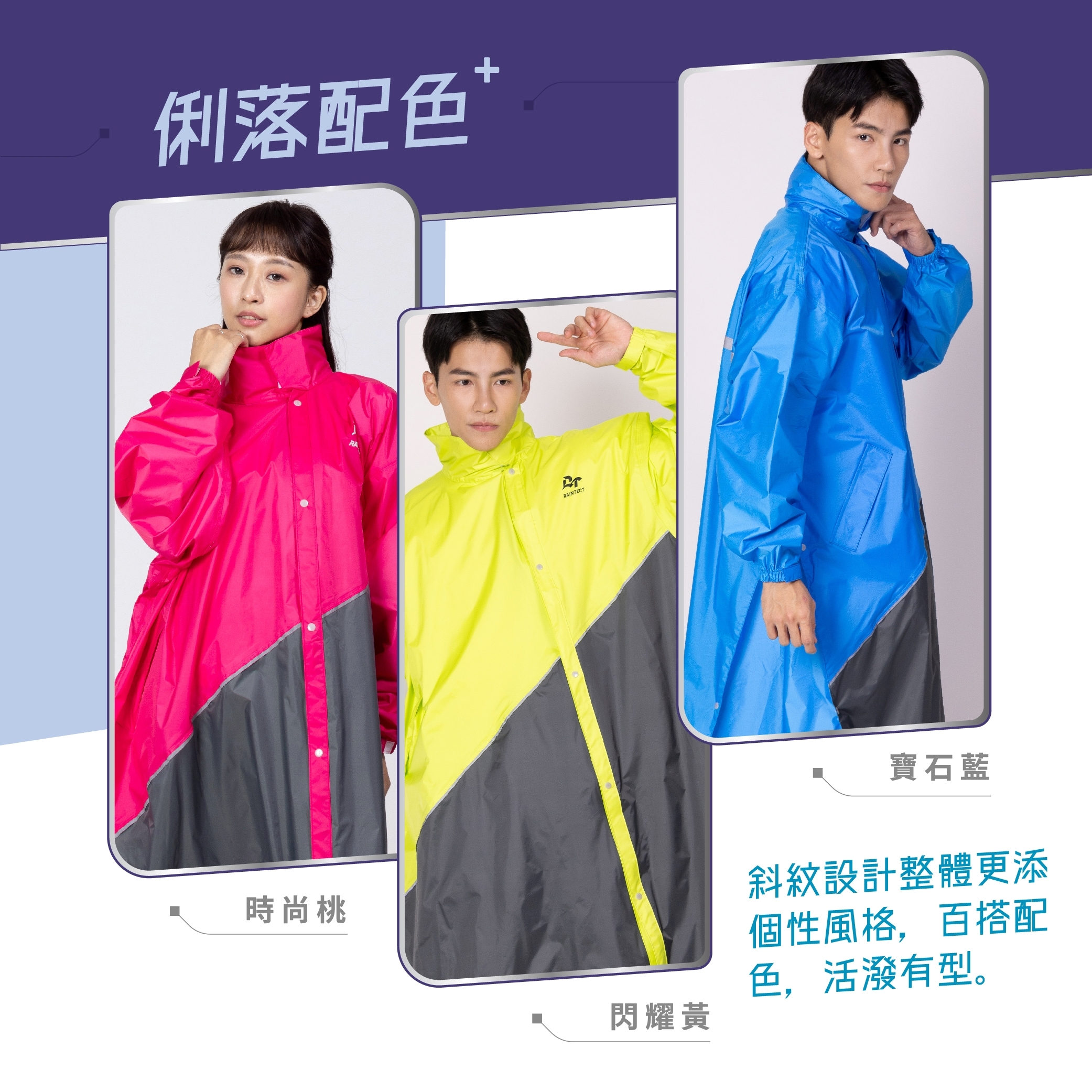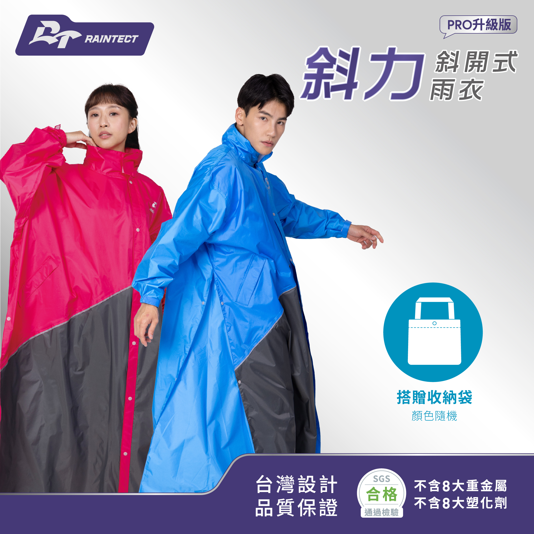 專利設計款斜力前開式雨衣
