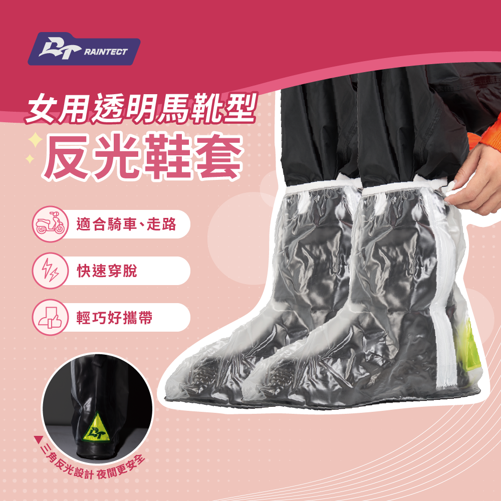 RAINTECT 女用透明馬靴型反光鞋套