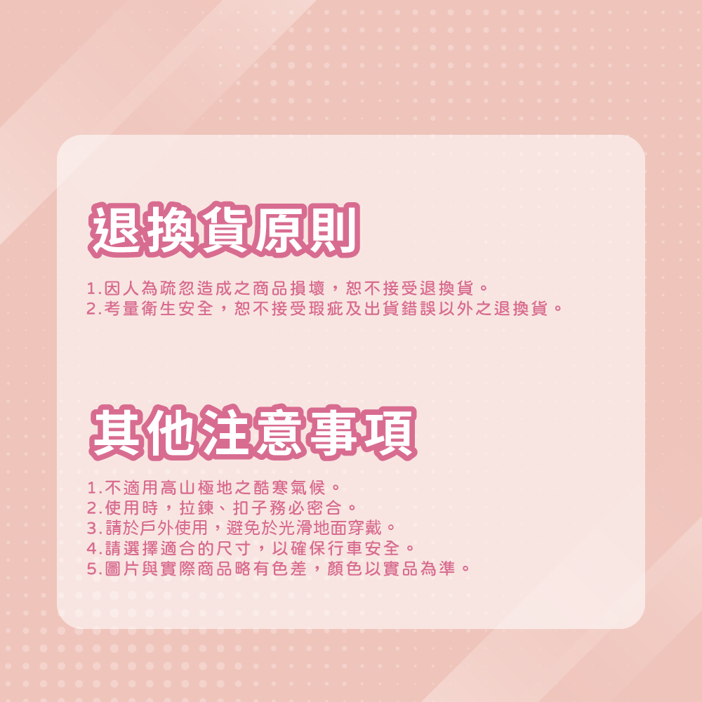 - 拉鍊+擋片 雙重防水設計